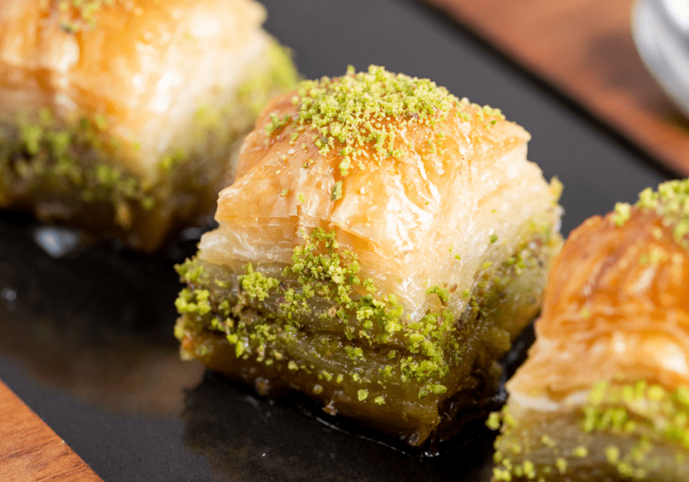 İncecik açılmış yufkaların arasına serpiştirilmiş Antep fıstığı veya ceviz ile hazırlanan, şerbetli klasik.