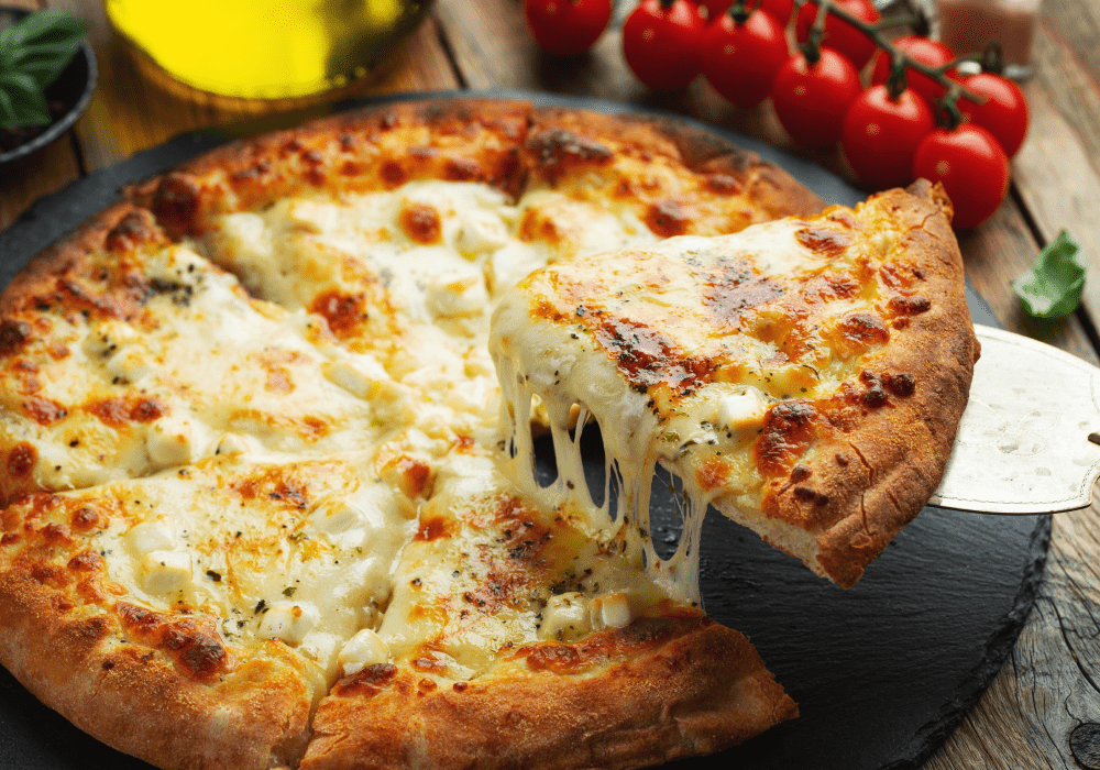 Mozzarella, parmesan, rokfor ve cheddar (veya yöresel peynirler) peynirlerinin eşsiz uyumu.
