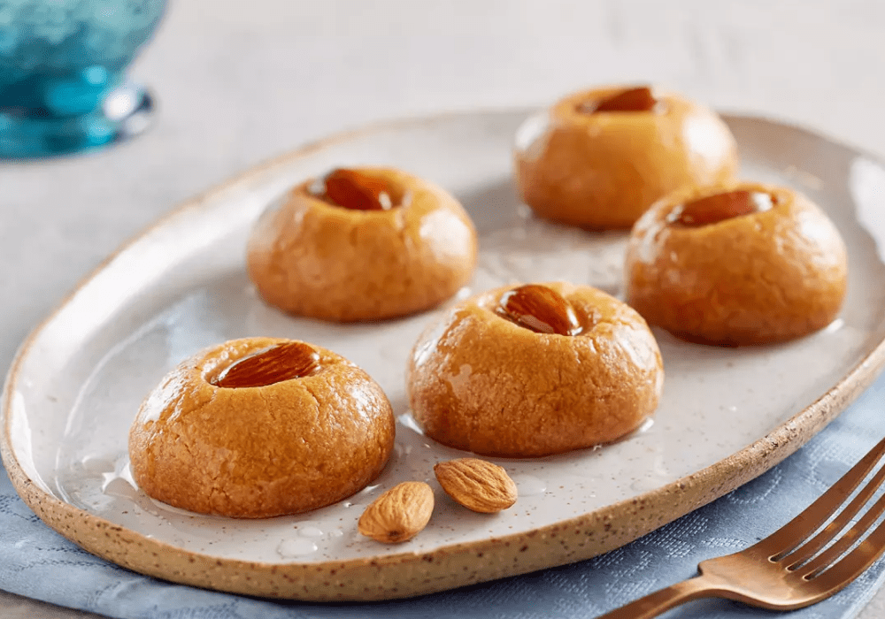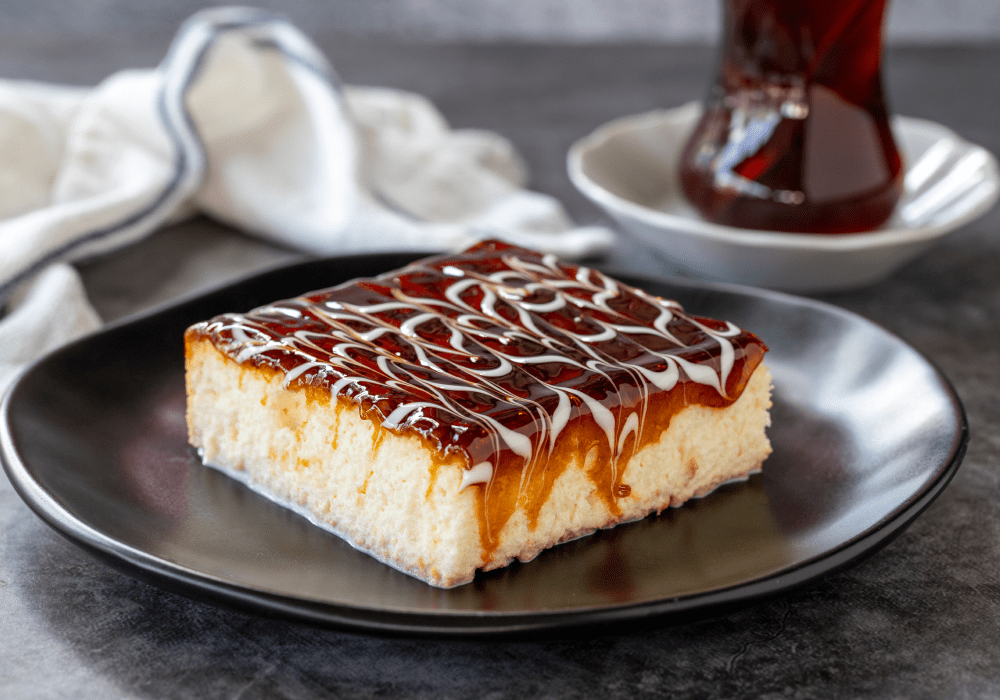 İrmik ve tereyağı ile hazırlanan, şerbetini tam çekmiş, üzeri fındıkla süslü.