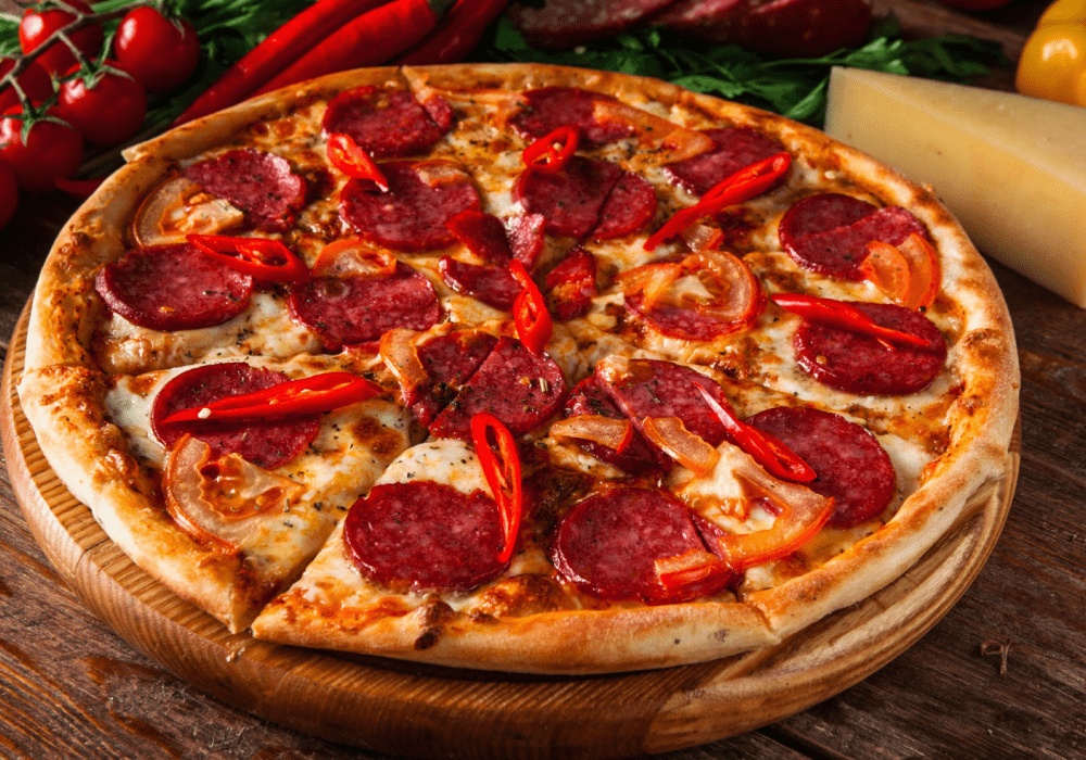 Sucuk, salam, sosis, mantar, mısır, zeytin, biber, domates sos ve mozzarella peyniri ile zengin bir lezzet şöleni.